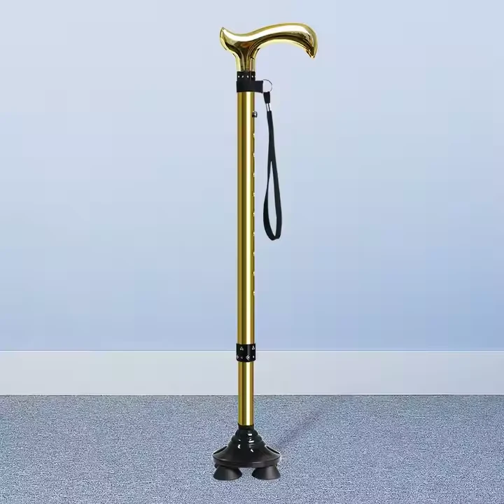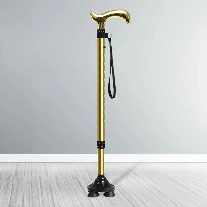 Pole Allory Telya ຍ່າງ, ຖານ quad ເຮັດໃຫ້ມັນເປັນ cane ທີ່ມີການຢືນຢູ່ຫຼືຫຼຸດລົງ. ເມື່ອໃດທີ່ເຄັ່ງຄັດຂື້ນກັບອ້ອຍປະຕິບັດຄືກັບໄມ້ຍ່າງແຂງທີ່ແຂງ.