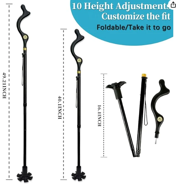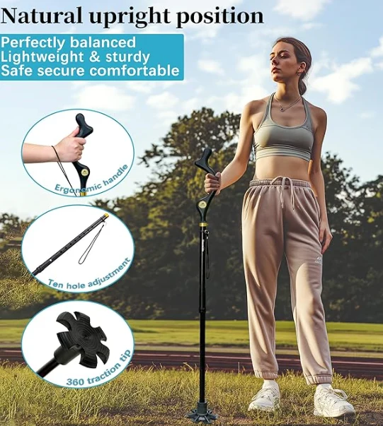 ອຸປະກອນຍ່າງປ່າກາງແຈ້ງ, ການຍ່າງ cane foldable ສໍາລັບຜູ້ສູງອາຍຸແລະແມ່ຍິງທີ່ມີຄວາມສົມດຸນ, ຄວາມສູງທີ່ສາມາດປັບໄດ້