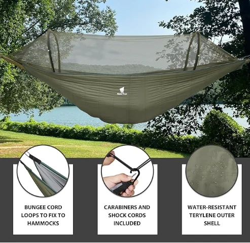 ການເດີນທາງຂອງ Hammock camp, ສົມທົບກັບກະເປົານອນແລະການໃສ່ຫົວຂອງຫ້ອຍ, ເຮັດໃຫ້ທ່ານອົບອຸ່ນກັບຜະລິດຕະພັນທີ່ເຢັນ .Zhejiang Jiayu ຜະລິດຕະພັນກາງແຈ້ງ. ມັນເປັນສິ່ງທີ່ດີເລີດສໍາລັບການຕັ້ງຄ້າຍພັກ, ກະເປົາ, ການລ່າສັດ, ກິດຈະກໍາກາງແຈ້ງ, ການປີນພູ